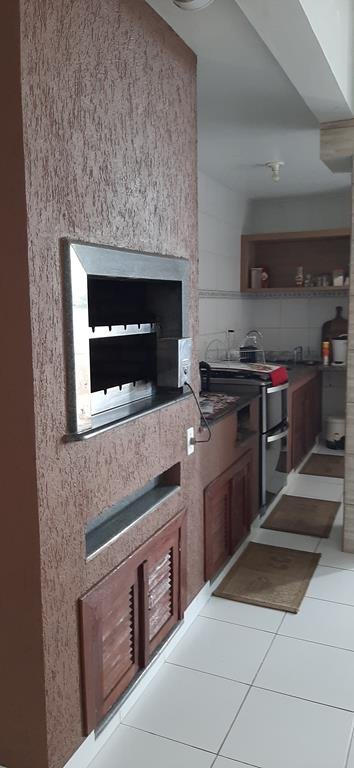 No primeiro piso ampla área social com churrasqueira elétrica, geladeira inverse, sala de estar, lavabo, cozinha convencional totalmente equipada, varanda.