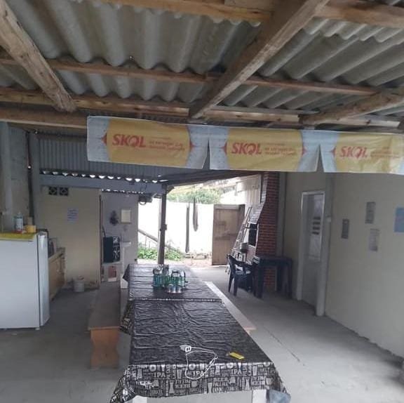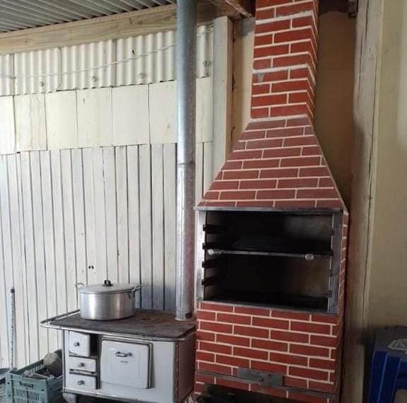 Uma área ampla com banheiros, churrasqueira, fogão a lenha e piscina. Á 300m da lagoa.
