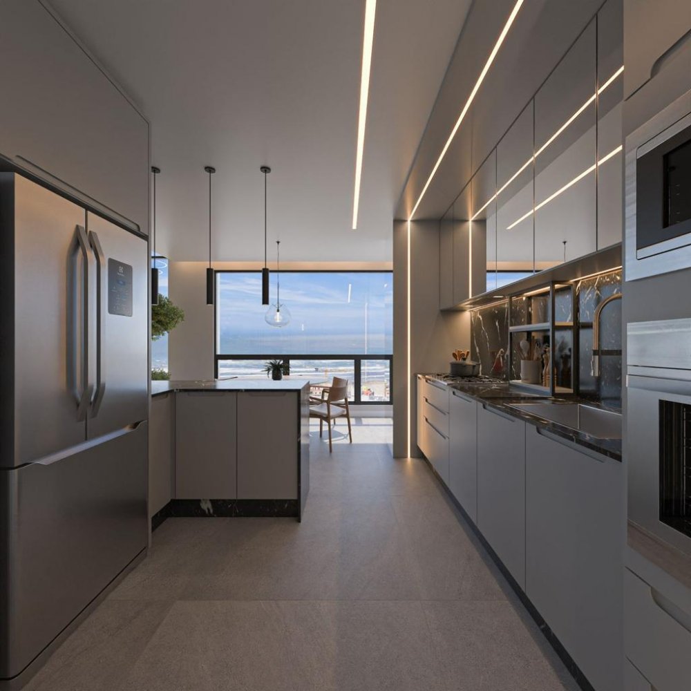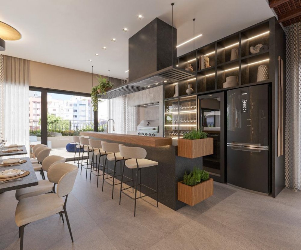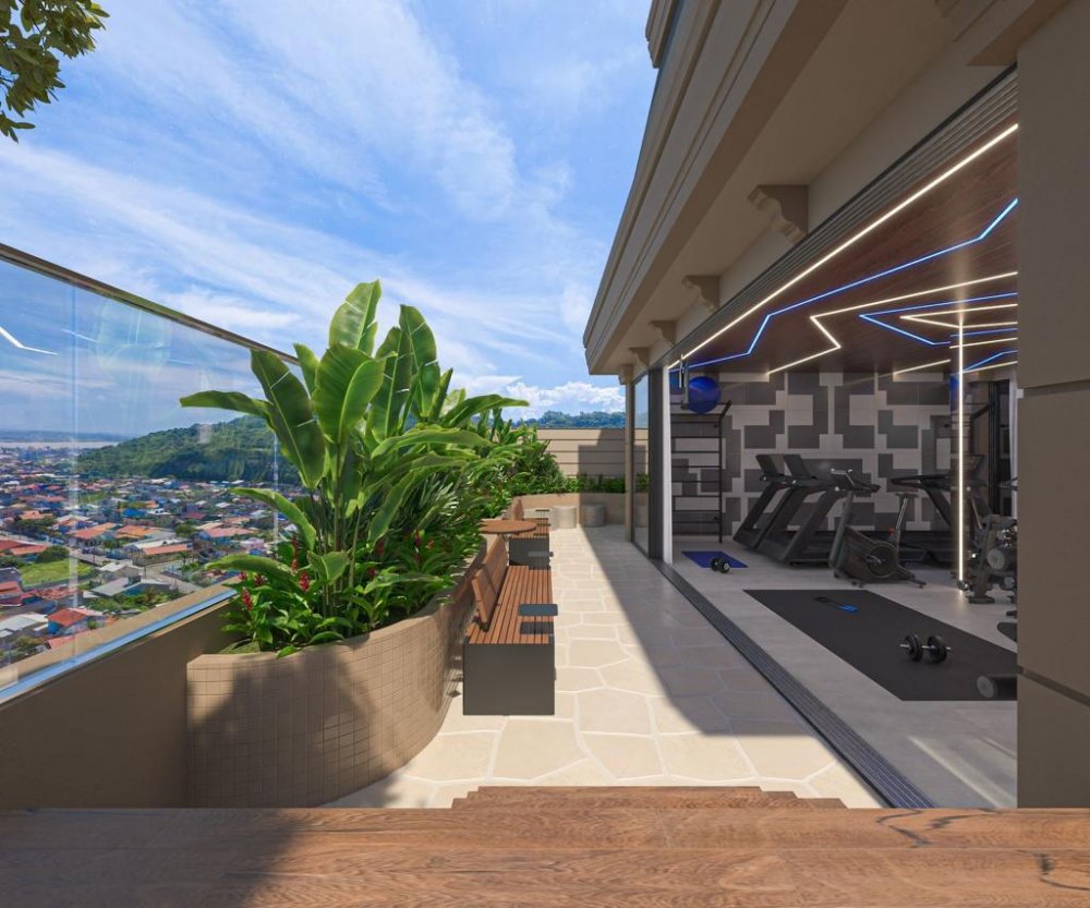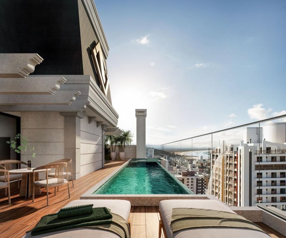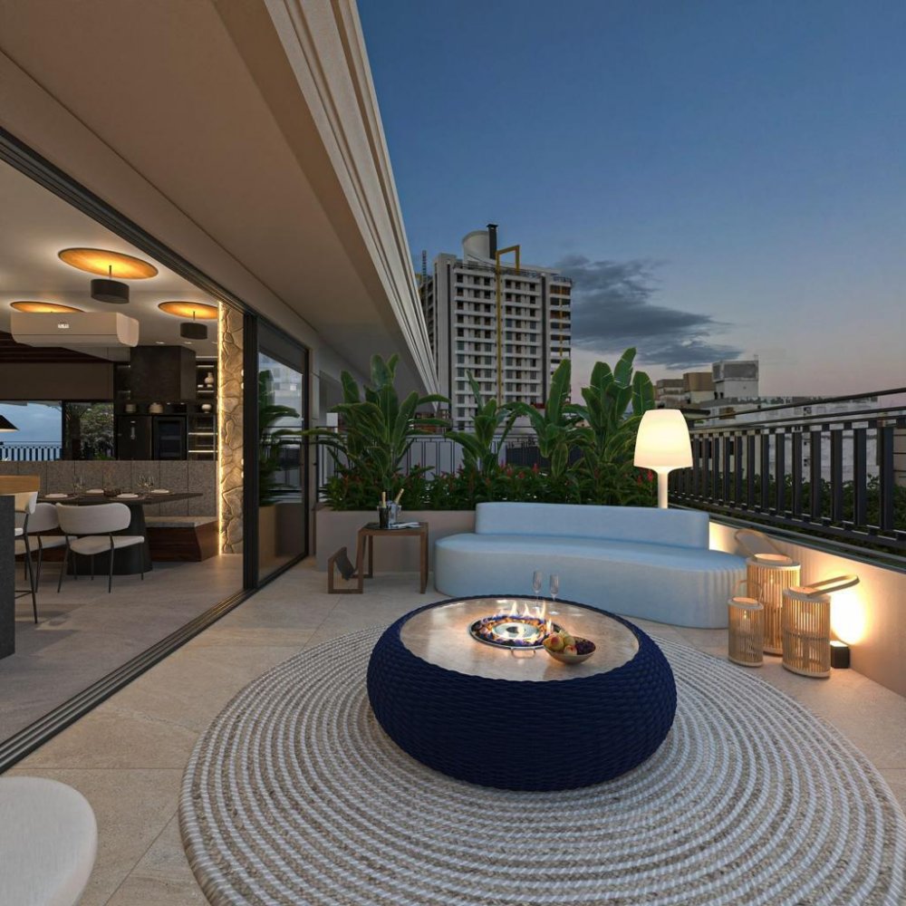 Cobertura duplex com: 1 suite master com closet, 3 suites, 1 lavabo, sala de tv/sala de jantar, área de serviço, area tecnica, área gourmet.